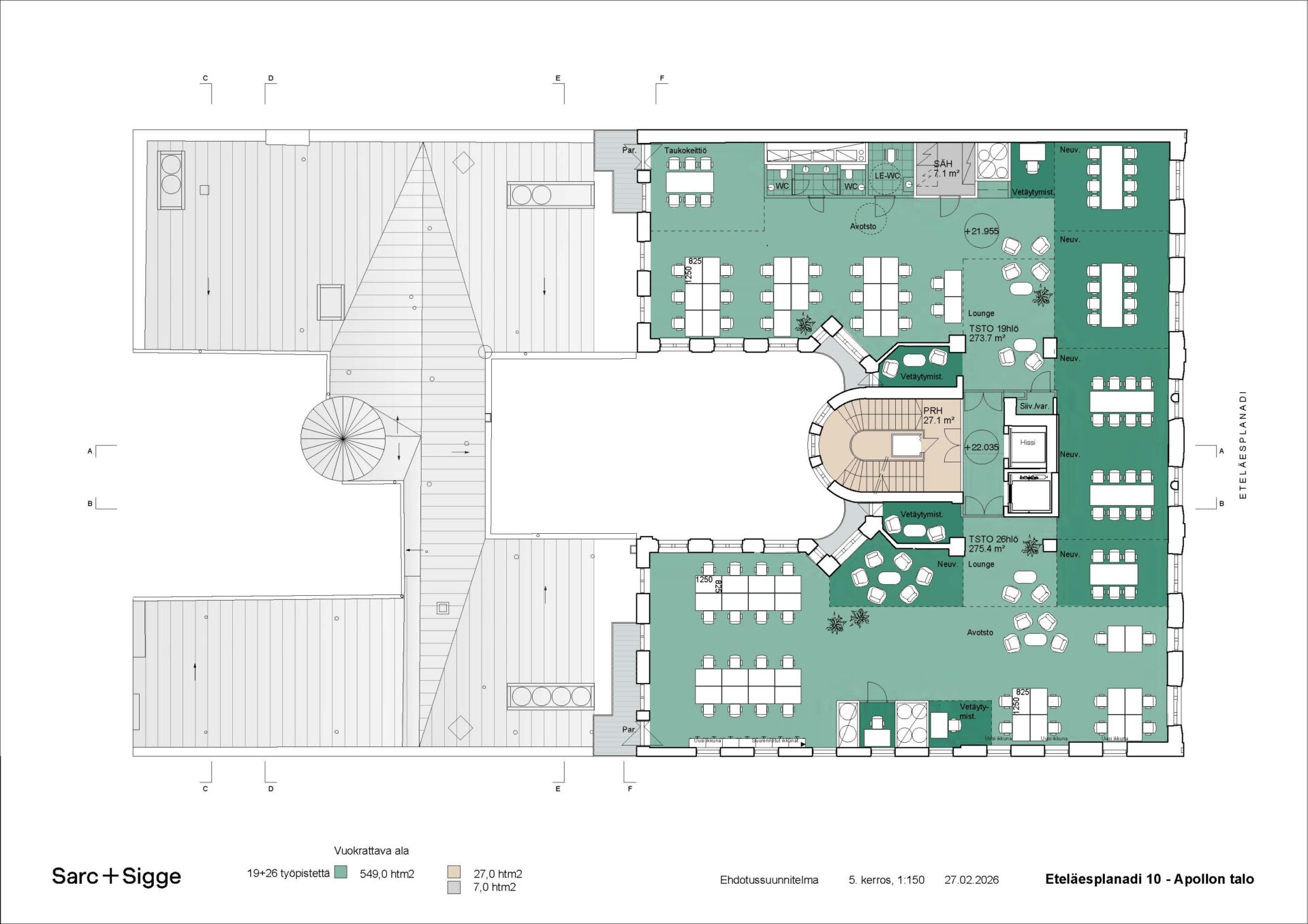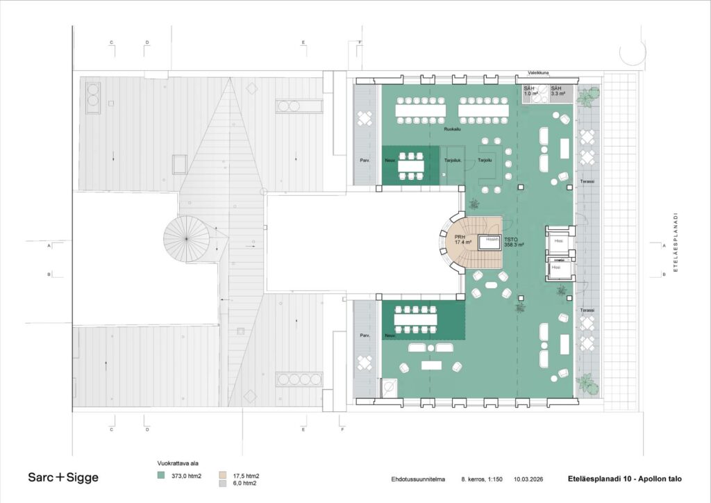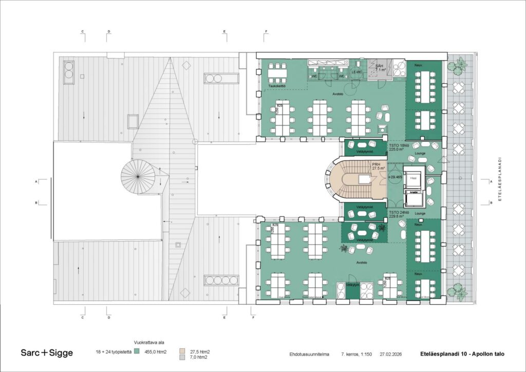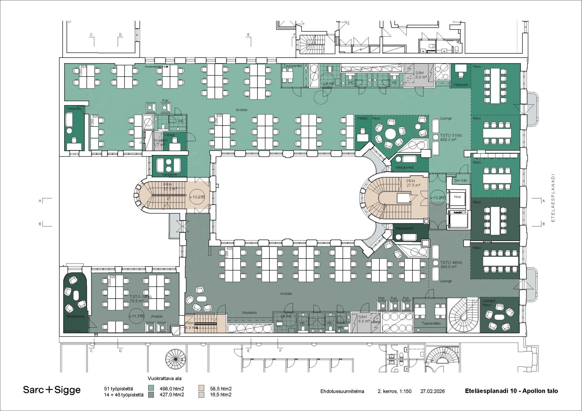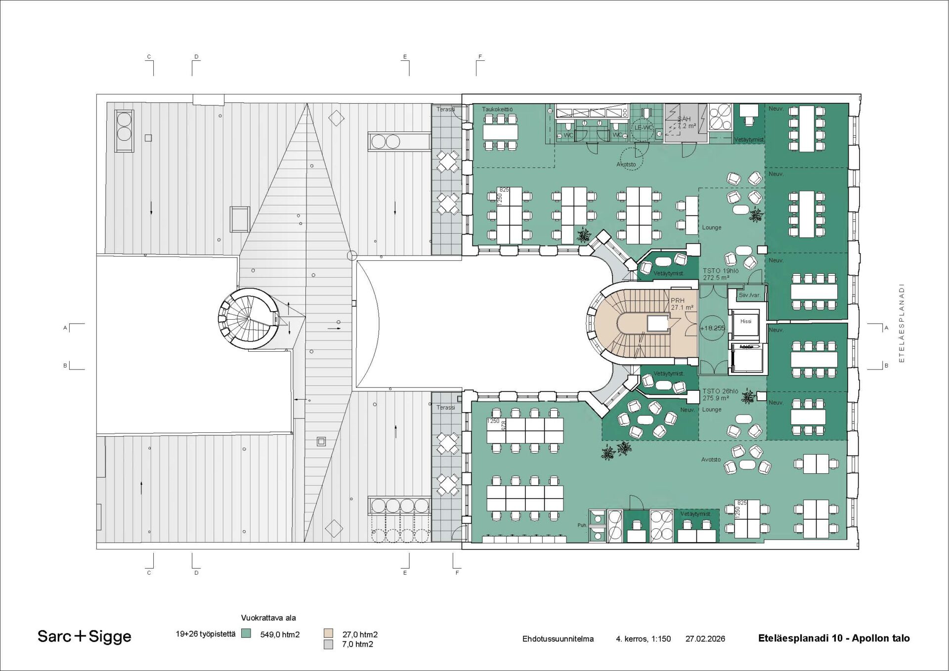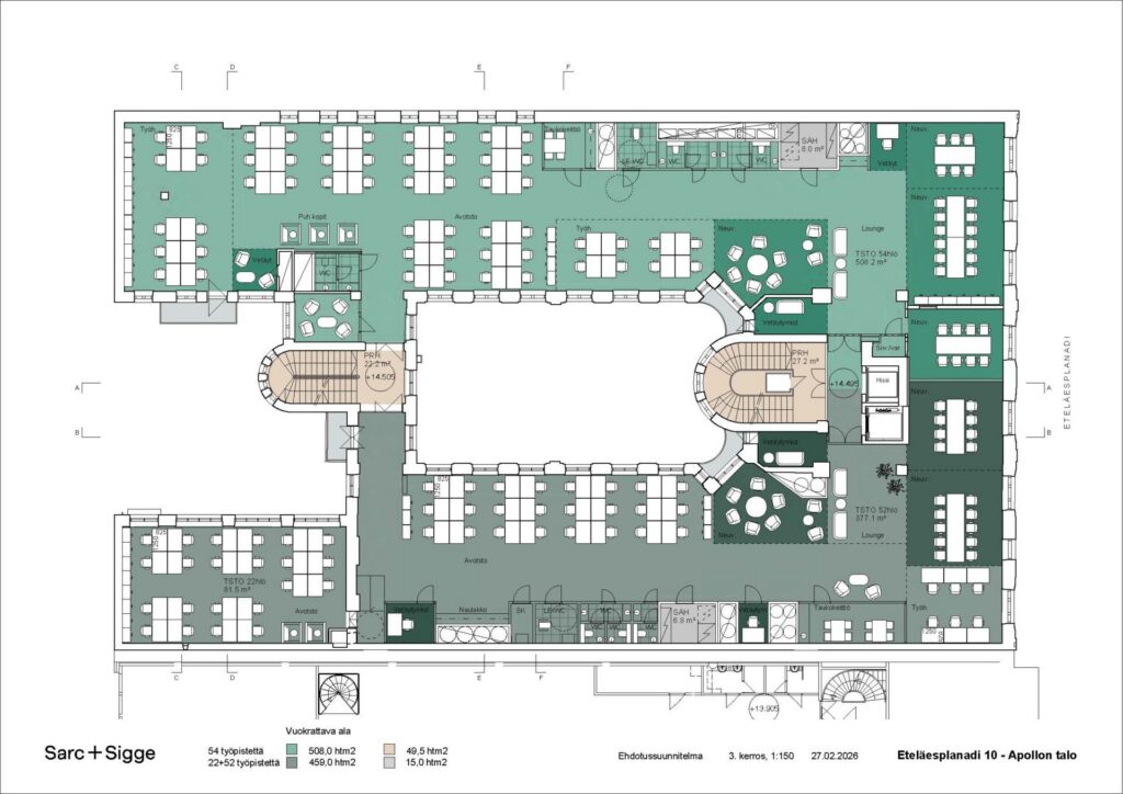 Apollon talo on suunniteltu yrityksille, jotka etsivät enemmän kuin osoitetta. Tilat edustavat suunnittelun hienointa kuratointia – kokonaisuutta, jossa avarat näkymät, huolellisesti valitut materiaalit, luonnonvalon hienovarainen rytmi ja ajaton eleganssi sulautuvat moderniin tehokkuuteen. Lopputulos on työympäristö, joka ei ainoastaan täytä odotuksia, vaan määrittelee uudelleen sen, mitä premium‑tason toimisto voi tänään olla.